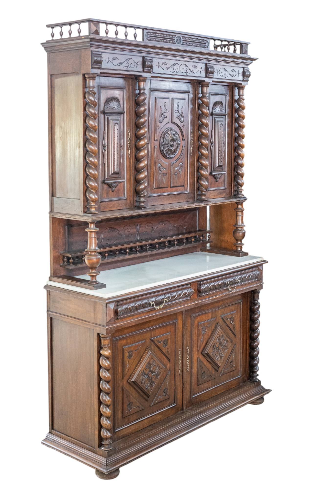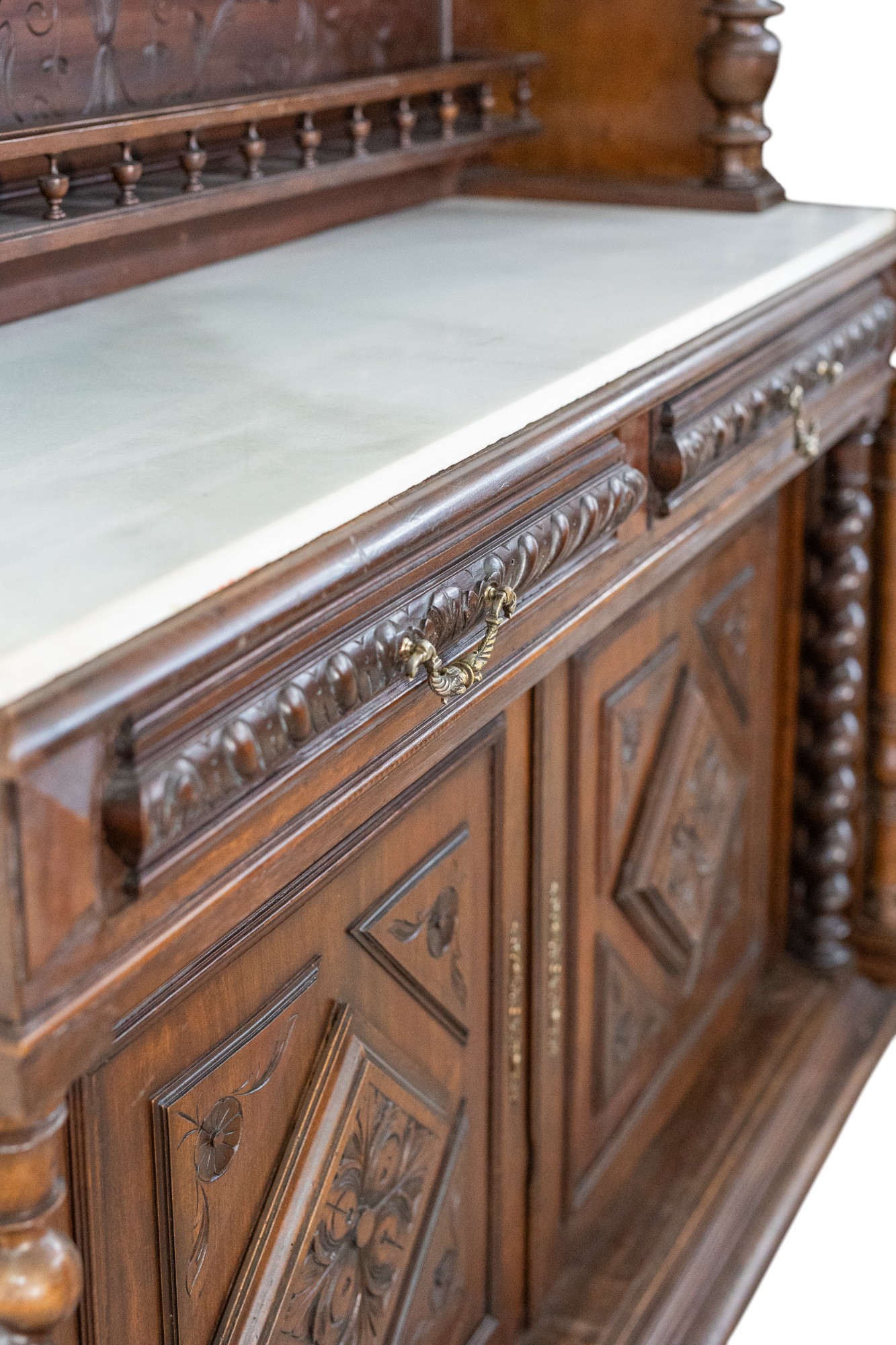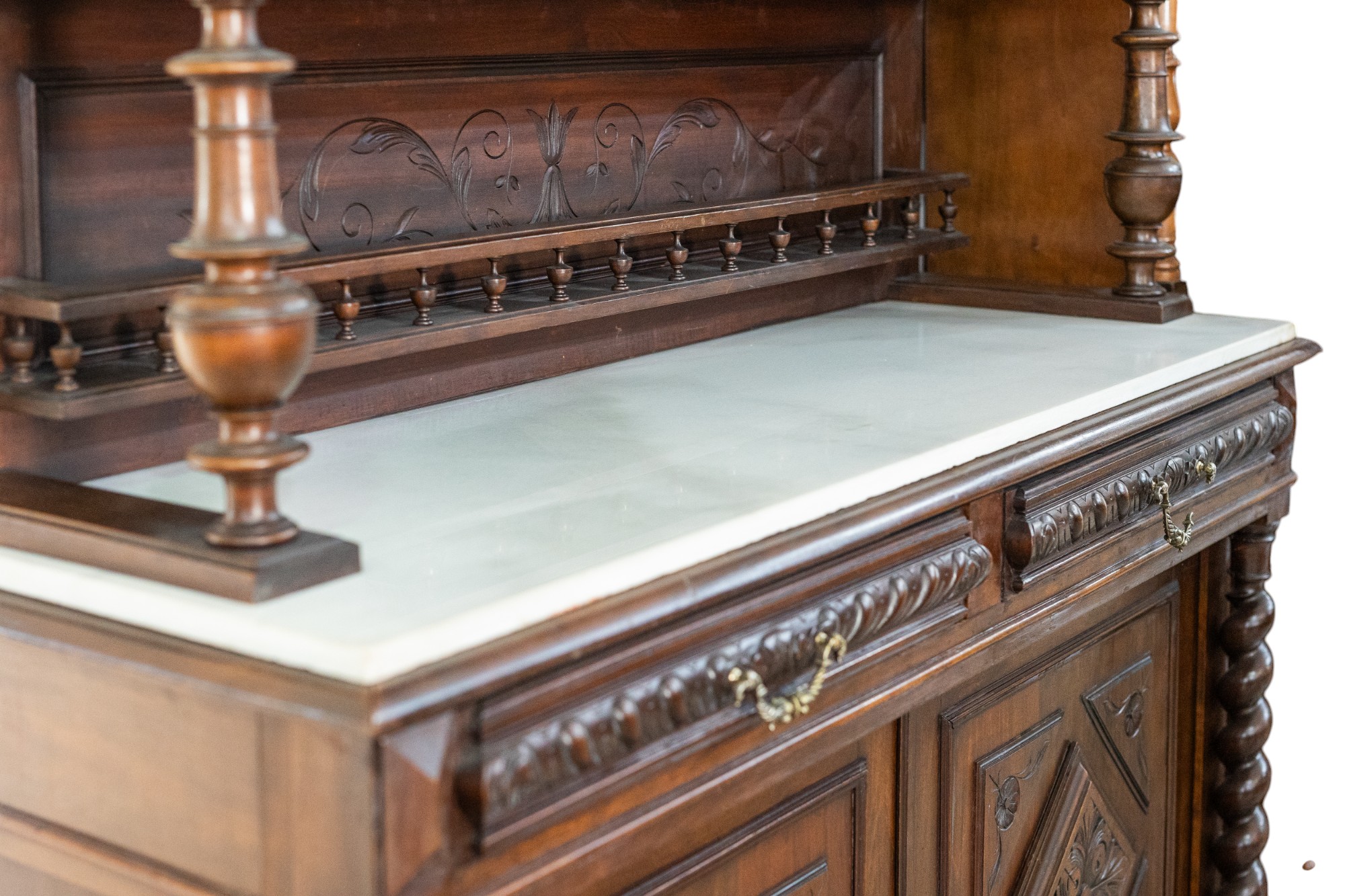 Aparador salomónico s. XIX con tapa de mármol.