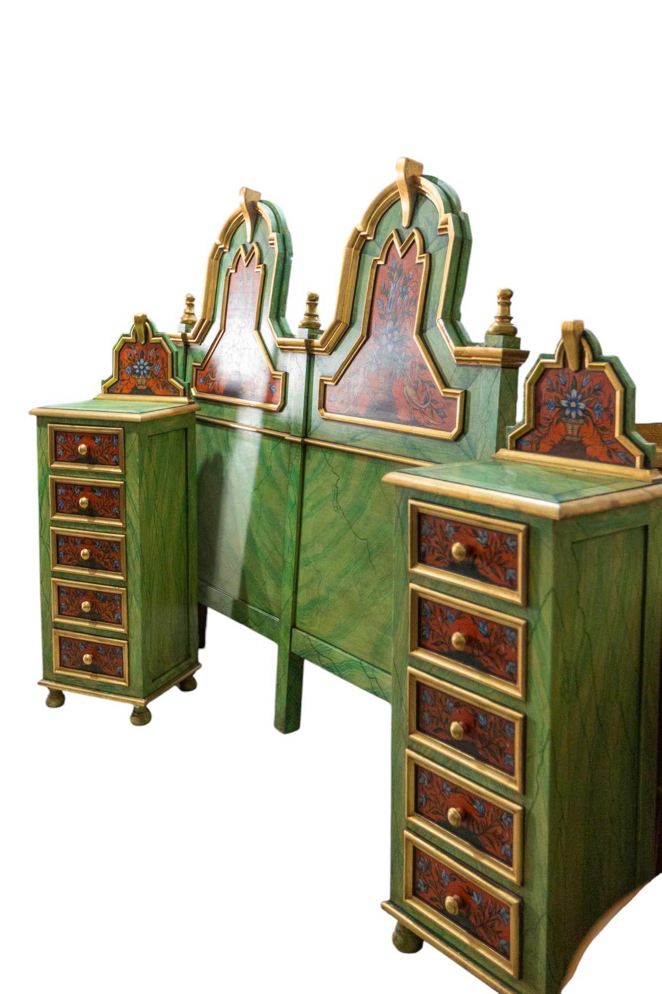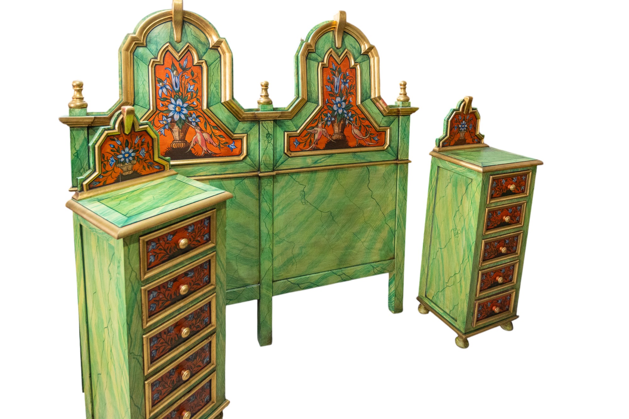 Cabecero doble pintado a mano con 2 mesillas a juego, medidas: