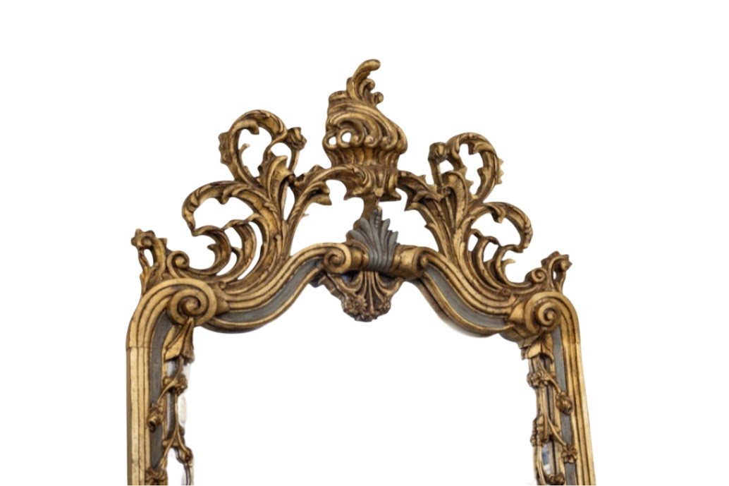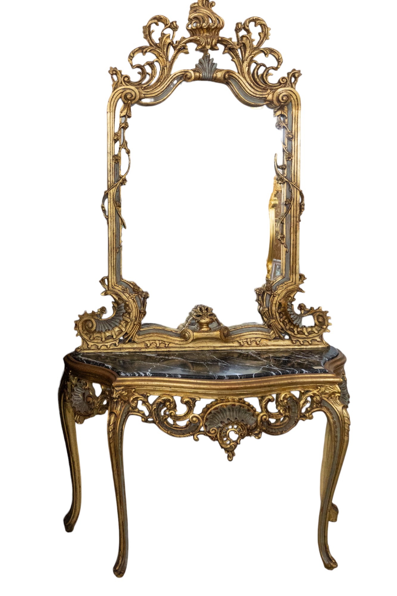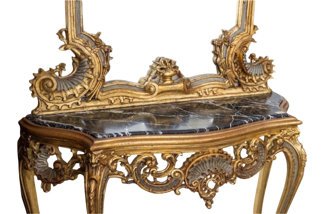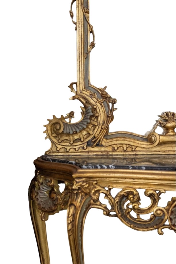 Consola y espejo de madera policromados y dorados.