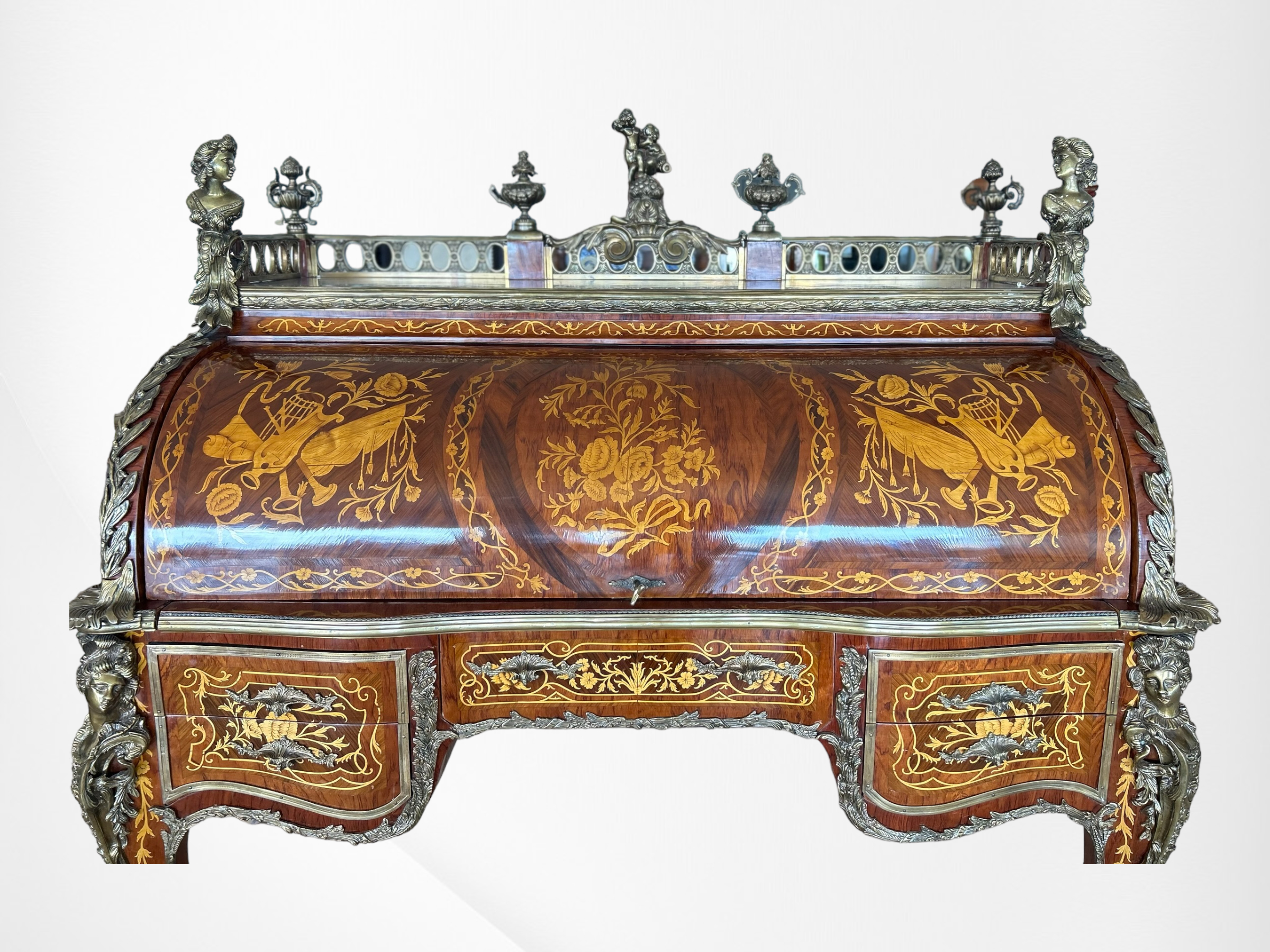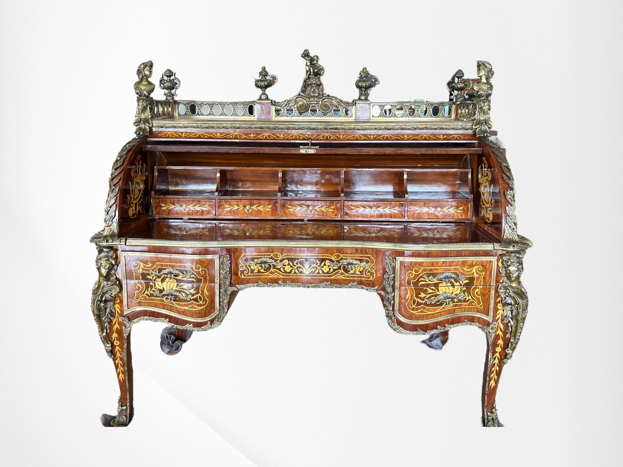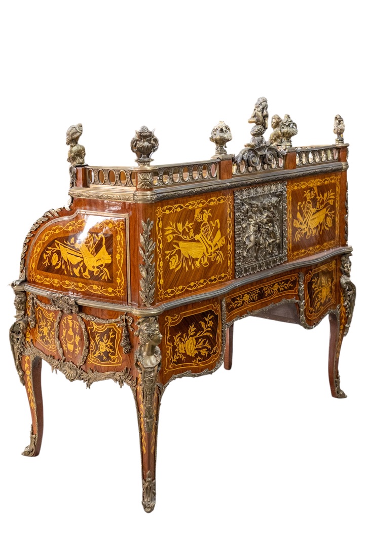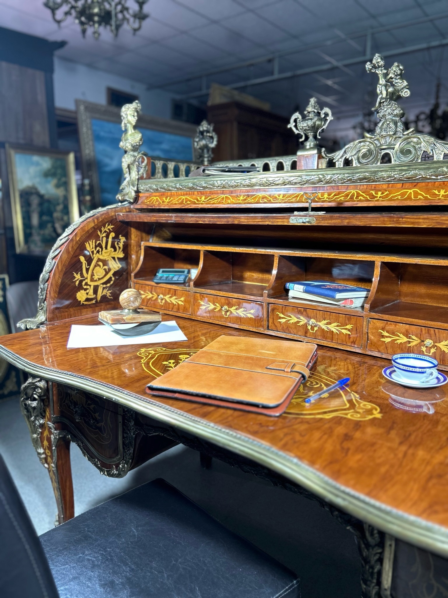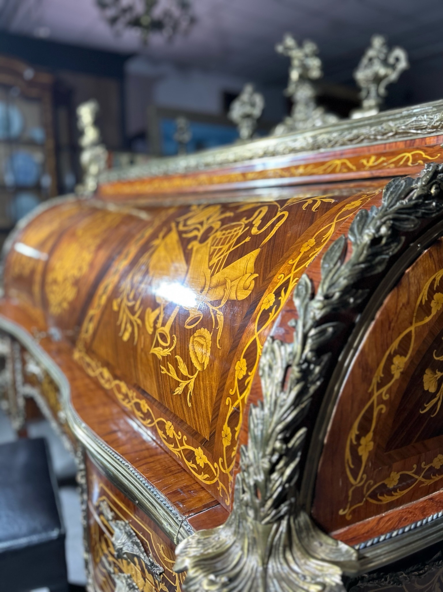 Escritorio de marqueteria y bronce, reproduccion aproximadamente unos 40 años.