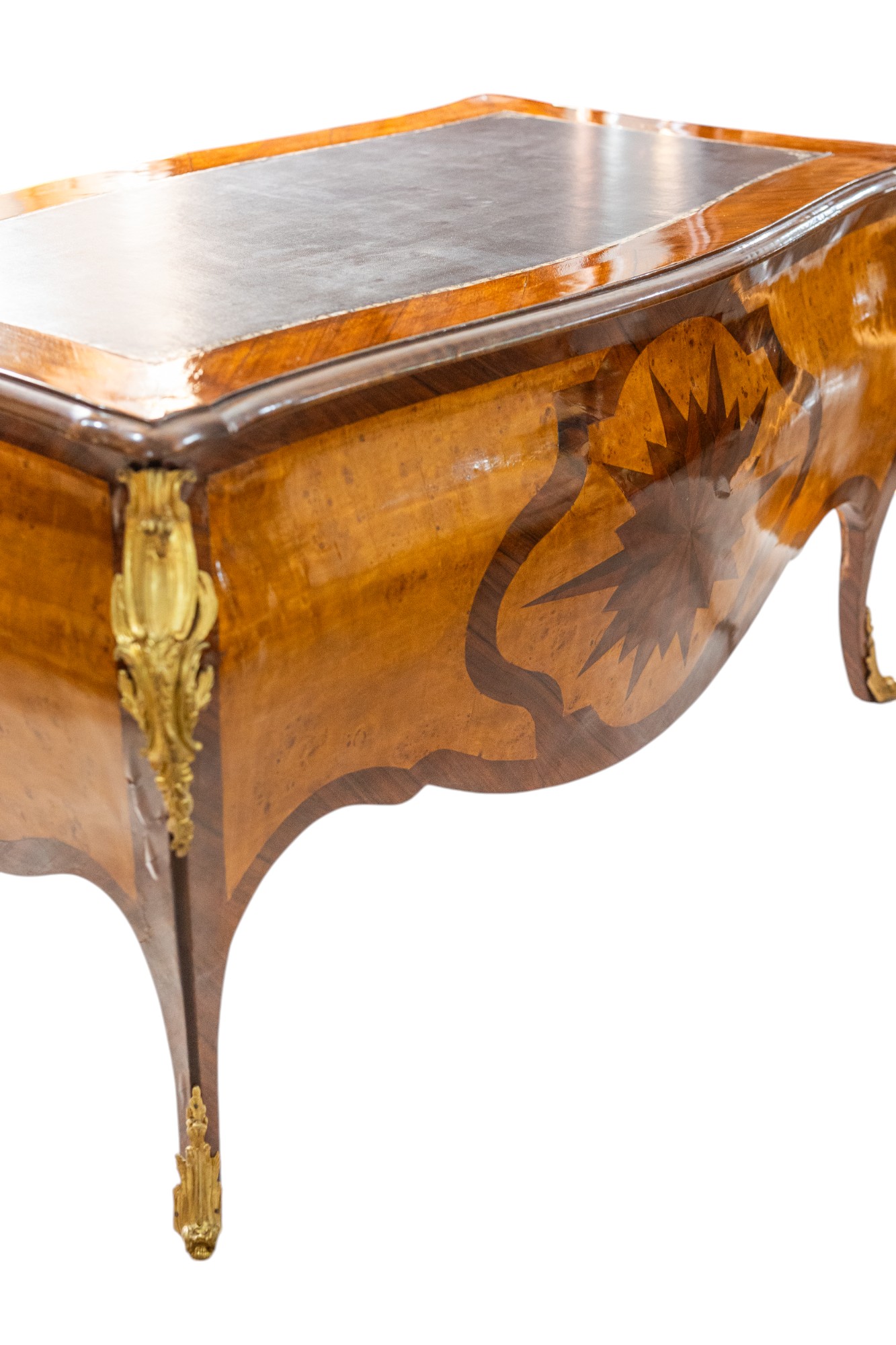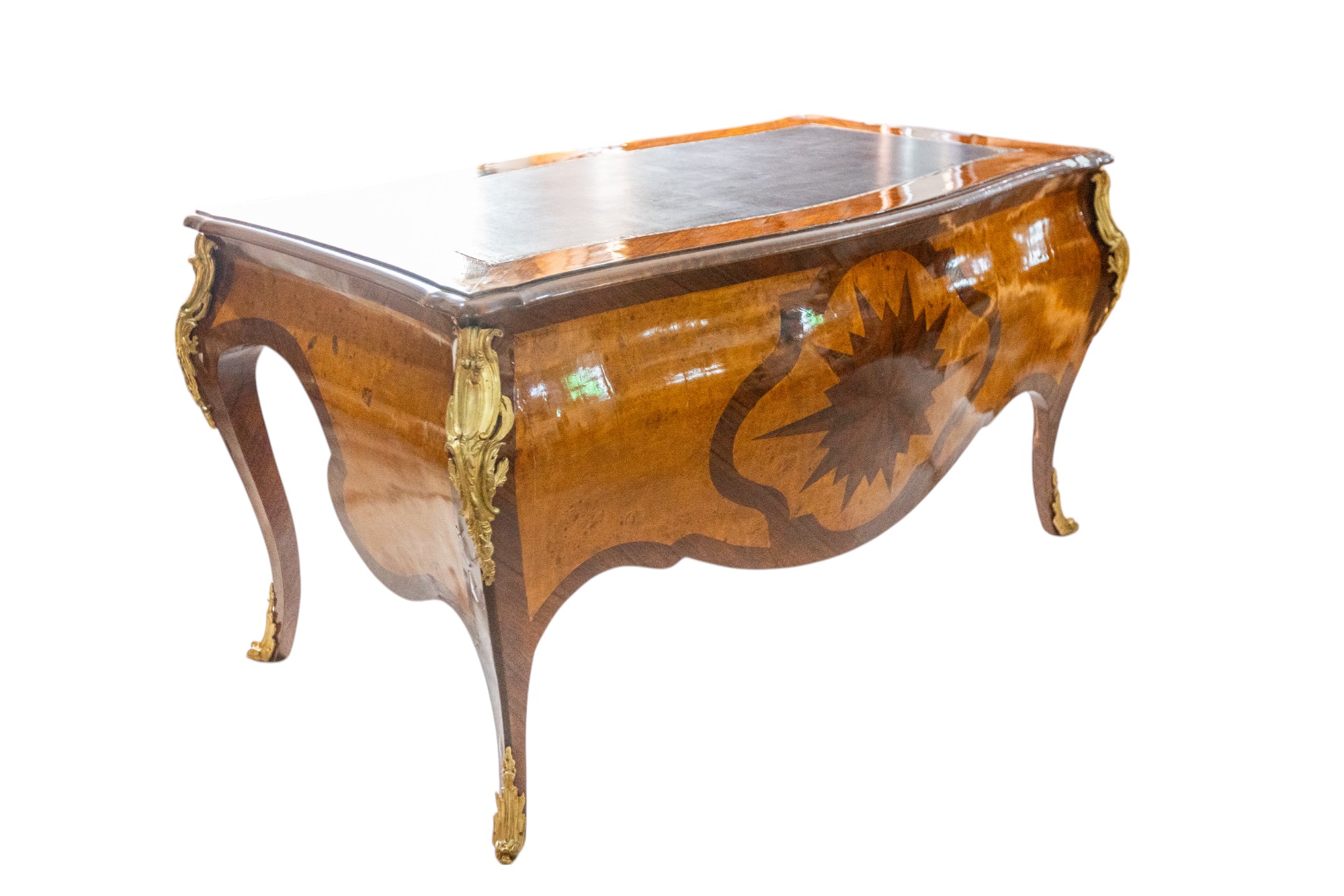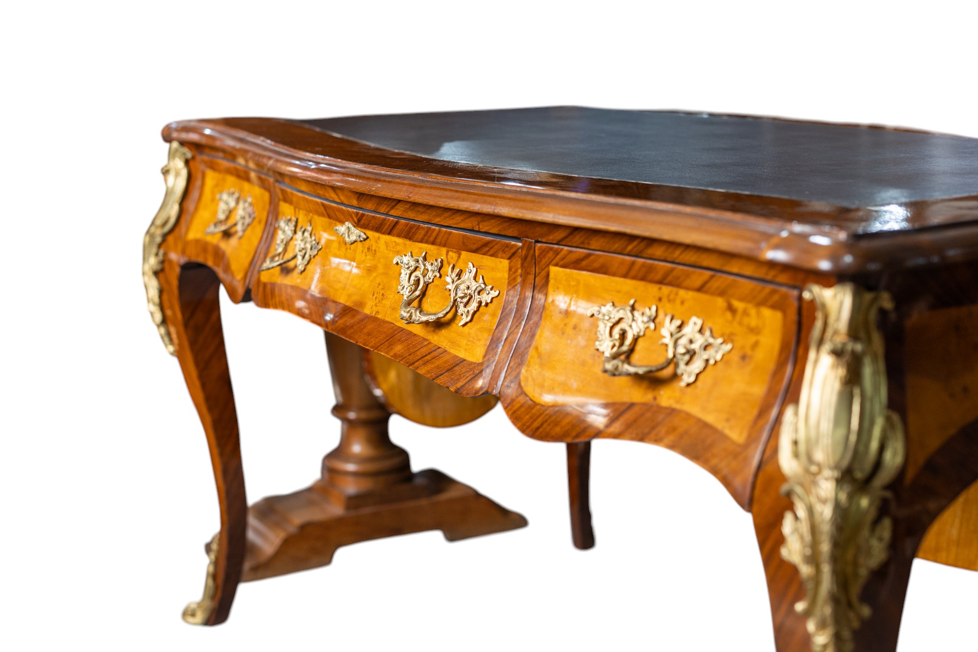 Mesa de despacho chapada y bronces.