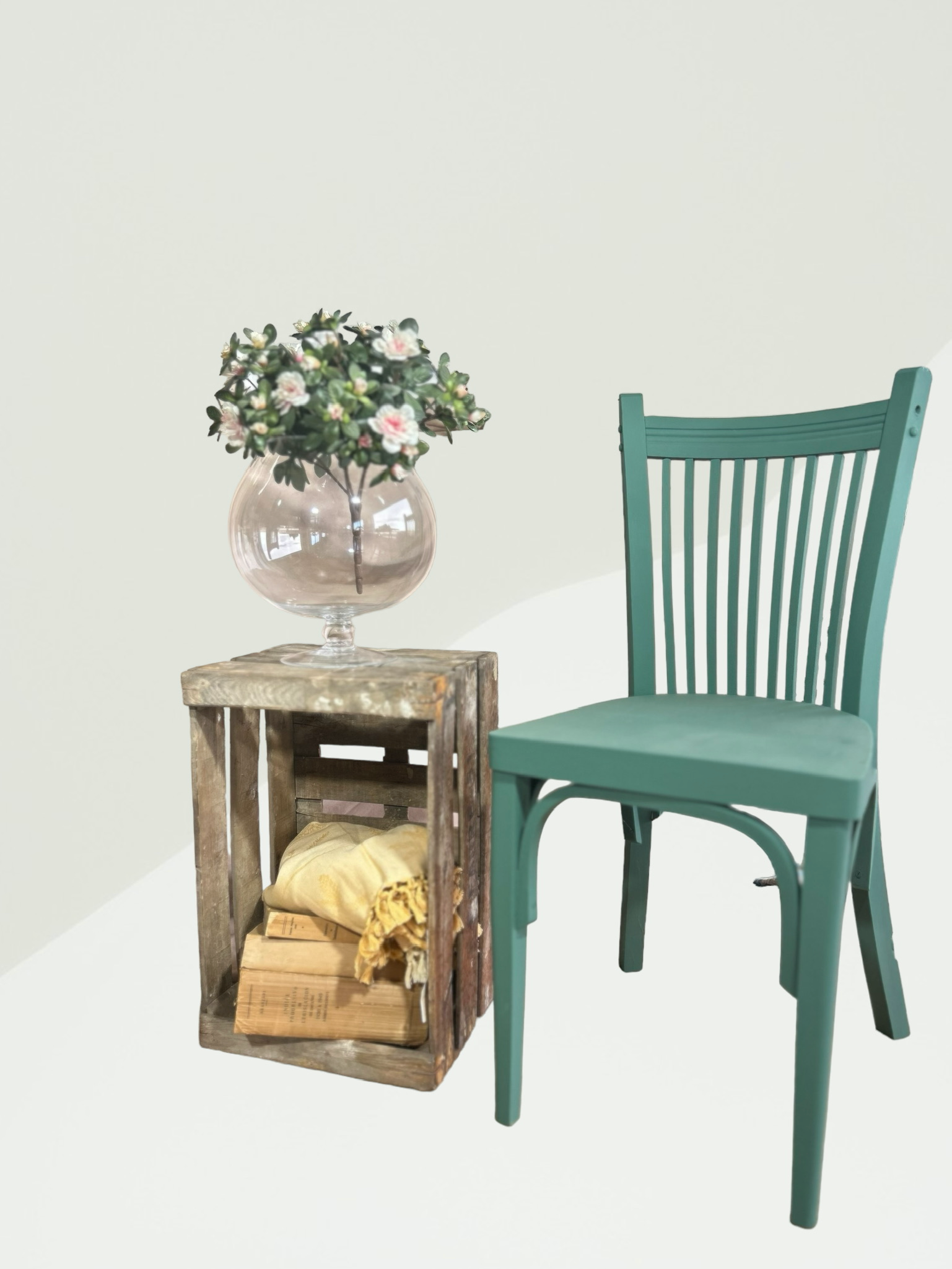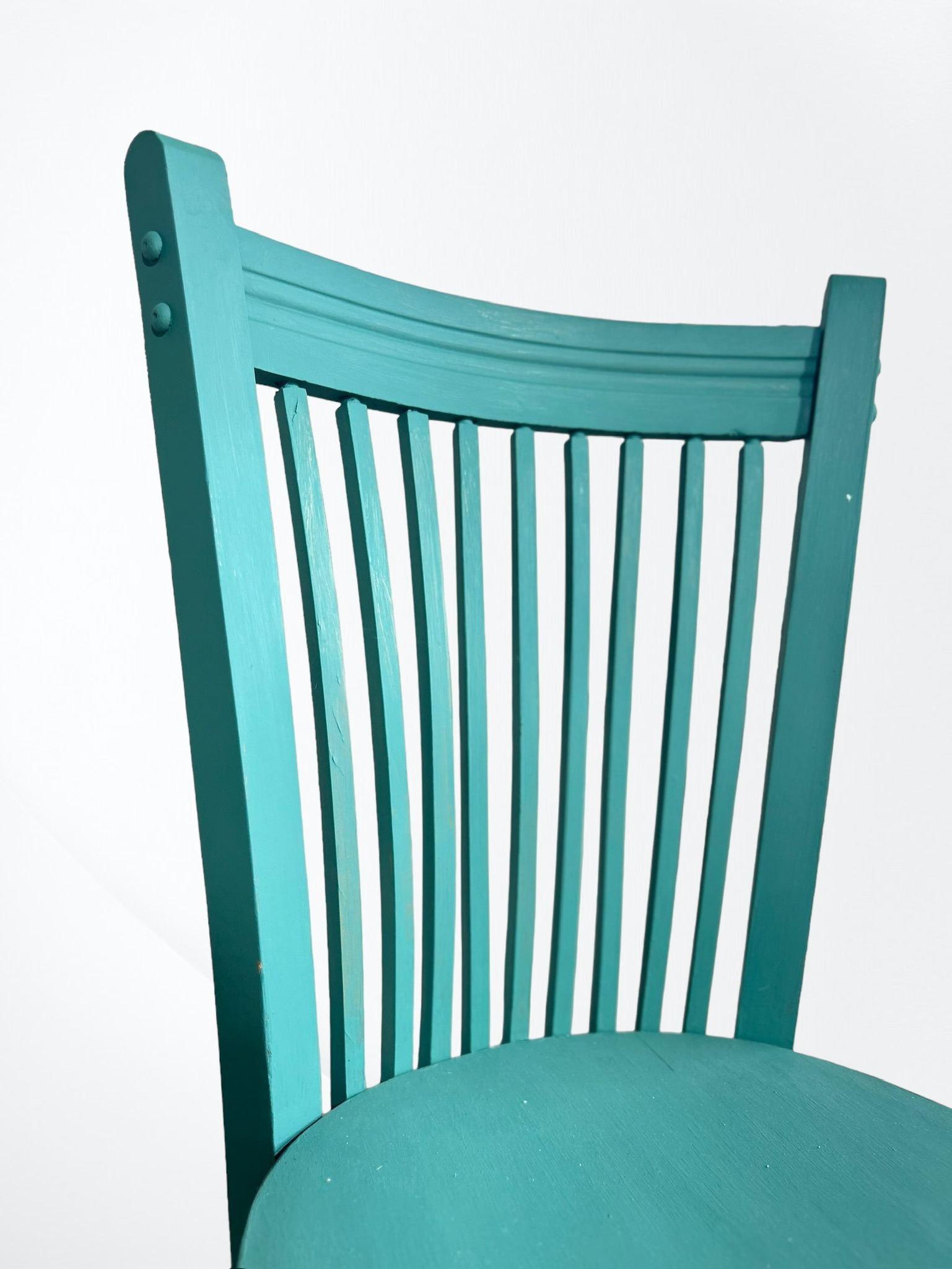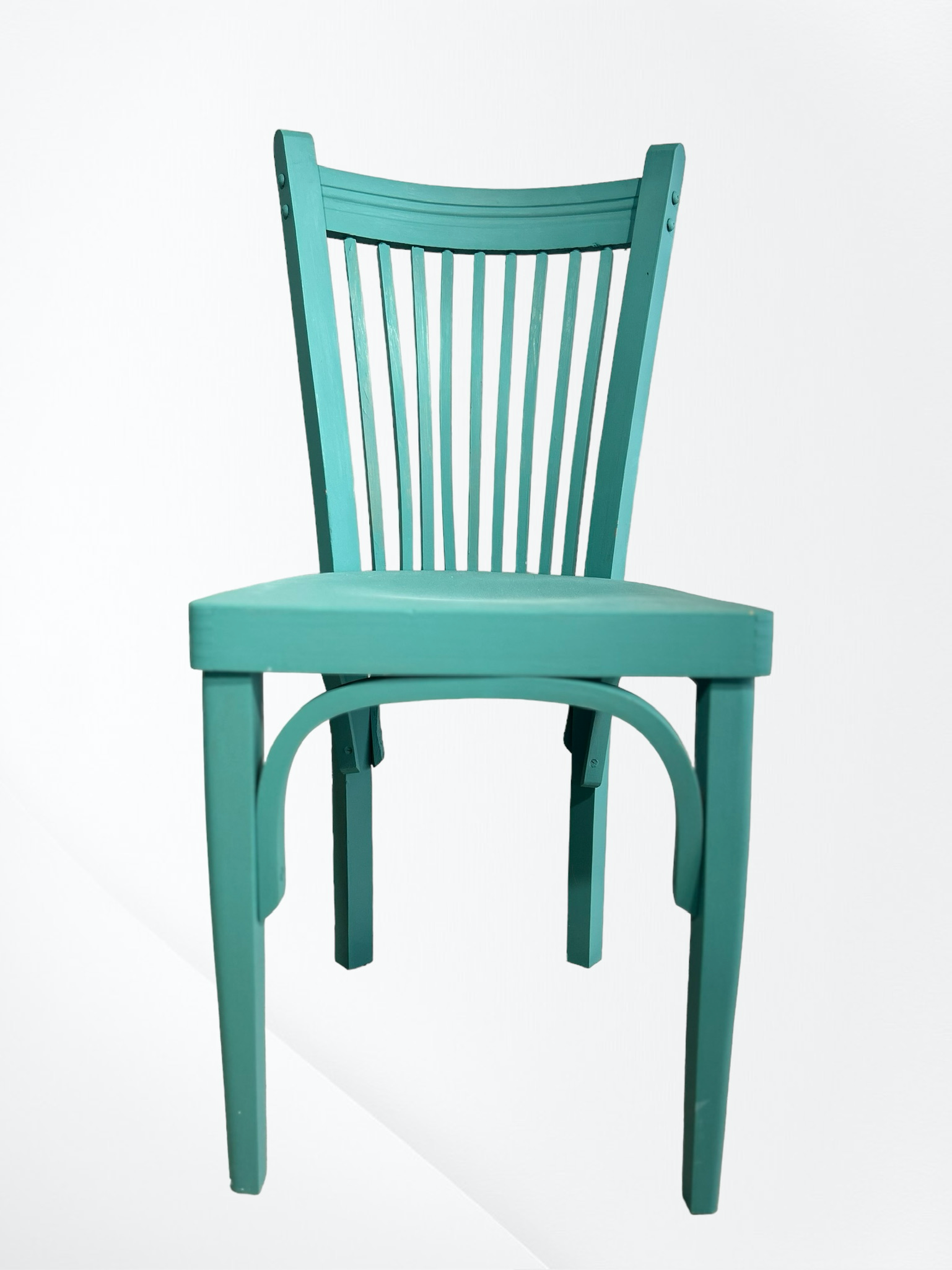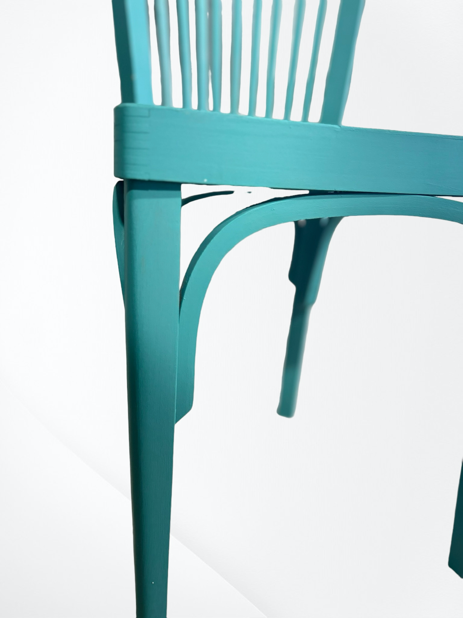 Silla modernista renovada y pintada en verde.