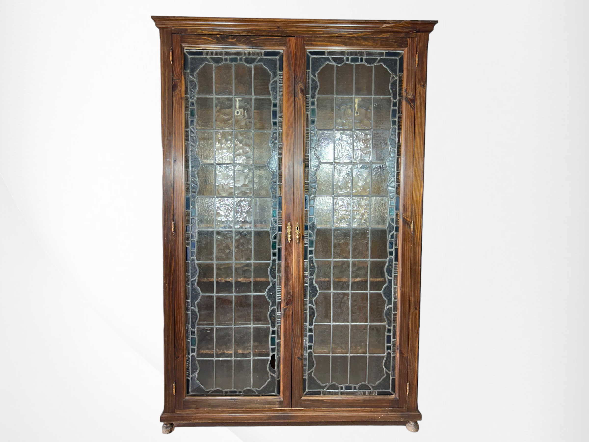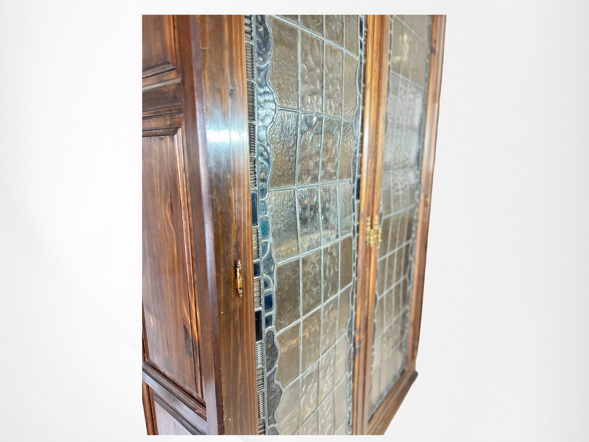 Vitrina reconstruida con puertas de cristal emplomado antiguo.